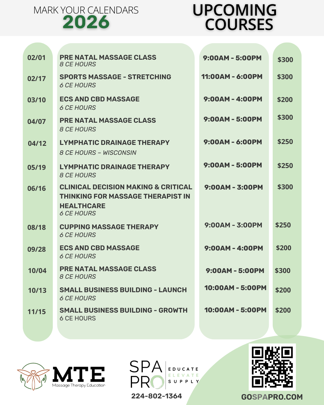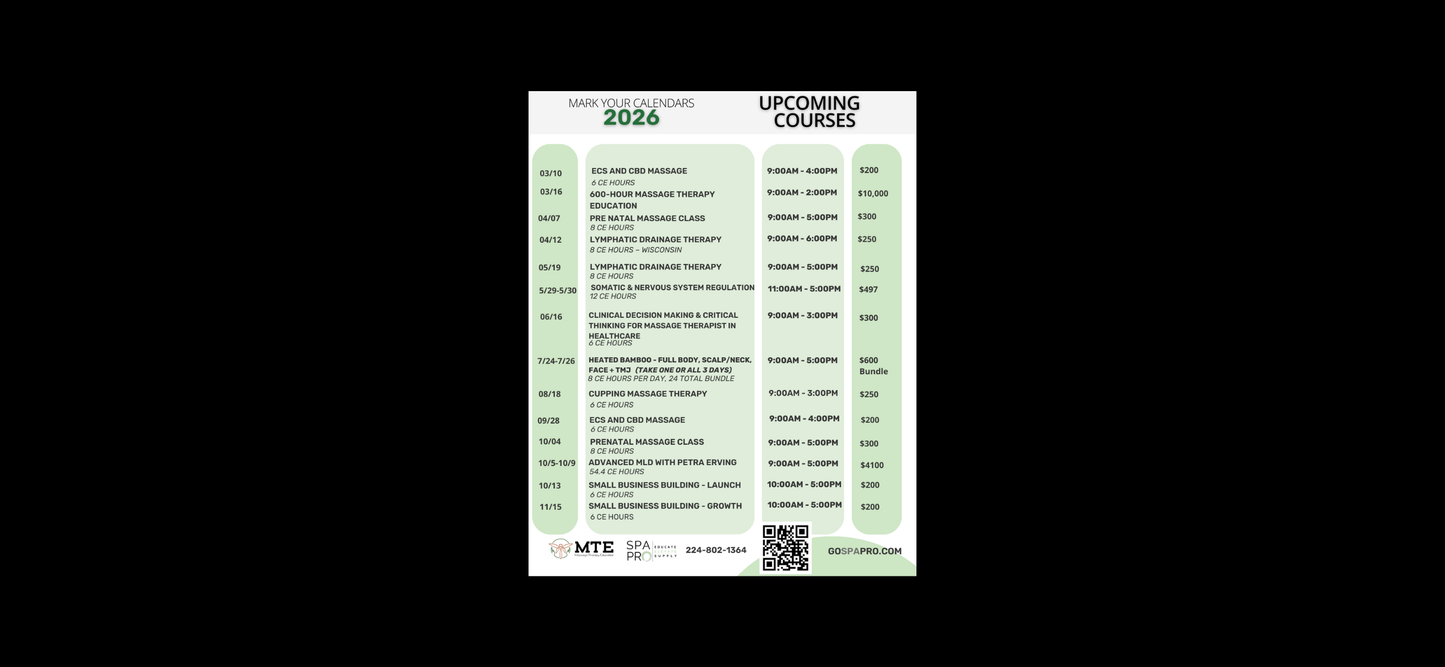 Upcoming Courses, Private Events + Happenings